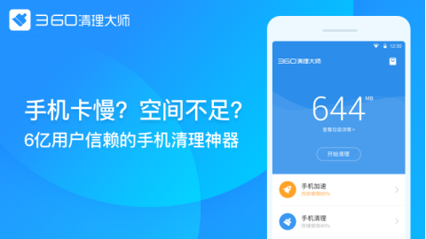 在后移動(dòng)互聯(lián)時(shí)代,微博微信、支付寶、直播、視頻游戲,這些最火的APP相信早已入駐你的手機(jī),但手機(jī)越用越卡頓,可用空間越來(lái)越少,不清理的話手機(jī)都沒(méi)法正常使用了。專注手機(jī)清理7年的手機(jī)清理神器——360清理大師憑借首創(chuàng)毫秒加速技術(shù),超強(qiáng)的智能一鍵清理,卓越的清理加速體驗(yàn),成為6億用戶的首選。