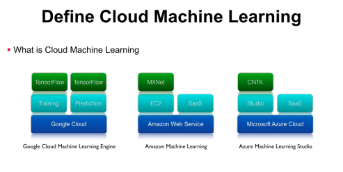第一個(gè)是Google Cloud Machine Learning Engine,它底層托管在Google Cloud上,上層封裝了Training、Prediction、Model Service等機(jī)器學(xué)習(xí)應(yīng)用的抽象,再上層支持了Google官方的TensorFlow開源框架。亞馬遜也推出了Amzon machine learning平臺,它基于AWS的Iaas架構(gòu),在Iaas上提供兩種差別的辦事,別離是可以運(yùn)行MXNet等框架的EC2虛擬機(jī)辦事,以及各種圖象、語音、自然語言處理的SaaS API。此外,微軟提供了Azure Machine Learning Studio辦事,底層也是基于本身可伸縮、可拓展的Microsoft Azure Cloud辦事,上層提供了拖拽式的更易用的Studio工具,再上面支持微軟官方的CNTK等框架,除此之外微軟還有各種感知辦事、圖象處理等SaaS API,這些辦事都是跑在Scalable的云基礎(chǔ)平臺上面。