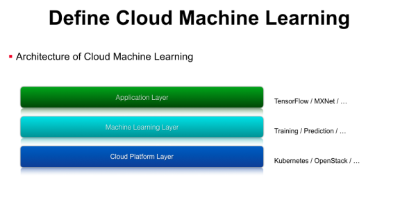那么如何實(shí)現(xiàn)Cloud Machine Learning平臺呢?我們對云深度學(xué)習(xí)辦事做了一個(gè)分層,第一層是平臺層,類似于Google cloud、Azure、AWS這樣的IaaS層,企業(yè)內(nèi)部也可以使用一些開源的方案,如容器編排工具Kubernetes或者虛擬機(jī)辦理工具OpenStack。有了這層之后,我們還需要支持機(jī)器學(xué)習(xí)相關(guān)的功能,例如Training、Prediction、模型上線、模型迭代更新等,我們在Machine Learning Layer層對這些功能進(jìn)行抽象,實(shí)現(xiàn)了對應(yīng)的API接口。最上面是模型應(yīng)用層,就可以基于一些開源的機(jī)器學(xué)習(xí)類庫,如TensorFlow、MXNet等。