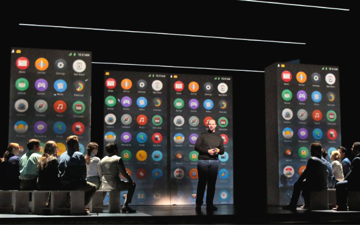 除了在音樂方面呼應了科技主題外,歌劇的配景也摒棄了過往用配景板搭建的方式,轉(zhuǎn)而使用投影體系,并由曾負責悉尼歌劇院戶外投影項目的 59 Production 來合作。