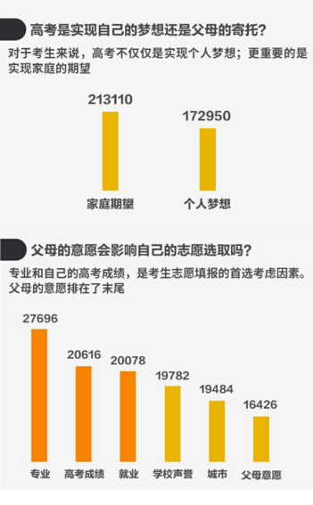 考生關(guān)注知名綜合性大學(xué) 家長關(guān)注專業(yè)性強(qiáng)校 父母意愿對志愿影響不大