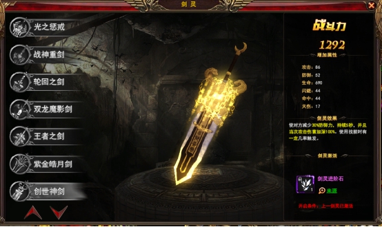 看過(guò)武俠小說(shuō)或影視劇的小伙伴們必然都還記得“劍?!?,一個(gè)埋藏天下好劍的神秘之地。遙想當(dāng)年《神雕俠侶》的雕兄帶楊過(guò)去獨(dú)孤前輩的劍冢,一覽獨(dú)孤一生所用之劍,從青年的白到中年的重劍以及老年的折枝為劍;差別階段差別的功力以及差別的境界,令人感嘆獨(dú)孤前輩的劍術(shù)出神入化、獨(dú)步天下。那么傲天神印王座中是否也有一個(gè)這樣埋劍之地呢?答案是否定的,不過(guò)開發(fā)組卻為你打開了另一扇通往劍靈的大門——?jiǎng)`系統(tǒng)。你可以將十大劍靈收入囊中,先看看它們都是些什么貨色。