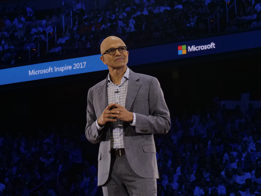 微軟CEO Satya Nadella在2017 Inspire微軟全球合作伙伴大會上