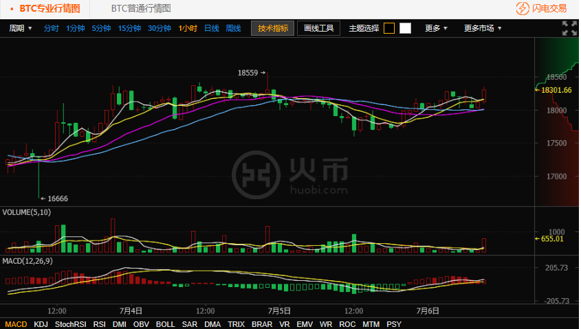 看火幣網(wǎng)比特幣行情日線圖。在 17000 元附近形成階段性底部后,出現(xiàn)有效的反彈,反彈至前期箱體17800- 18200 元以后,再次形成震蕩格局,成交量能有所縮小,表白不雅觀望的格局再次形成??椿饚啪W(wǎng)比特幣行情小時(shí)圖。本輪反彈后,火幣網(wǎng)比特幣在震蕩過程中形成新的箱體17600- 18400 元,箱體震蕩區(qū)間加大,MACD持續(xù)翻紅,多頭力量有反攻之勢(shì)?;饚啪W(wǎng)溫馨提示:投資有風(fēng)險(xiǎn),入市需謹(jǐn)慎。
