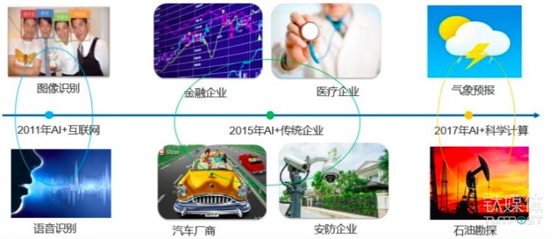 2011年,谷歌和微軟研究院的語音識別標(biāo)的目的研究專家先后采用深度神經(jīng)網(wǎng)絡(luò)技術(shù)將語音識另外錯誤率降低20%~30%,這是長期以來語音識別研究領(lǐng)域取得的重大突破。2012年,深度神經(jīng)網(wǎng)絡(luò)在圖像識別應(yīng)用方面也獲得重大進(jìn)展,在ImageNet評測問題中將本來的錯誤率降低了9%,隨著AI在語音和圖像識另外巨大成功,互聯(lián)網(wǎng)行業(yè)越來越多的用戶開始應(yīng)用AI。從2015年開始,傳統(tǒng)行業(yè)越來越多的用戶也開始應(yīng)用AI,好比金融企業(yè)、醫(yī)療企業(yè)、汽車廠商和安防企業(yè)等。本年,我們也看到很多傳統(tǒng)科學(xué)計算用戶開始研究AI技術(shù),如氣象和石油勘探用戶,利用 AI技術(shù)來提高相關(guān)應(yīng)用的預(yù)測精度。