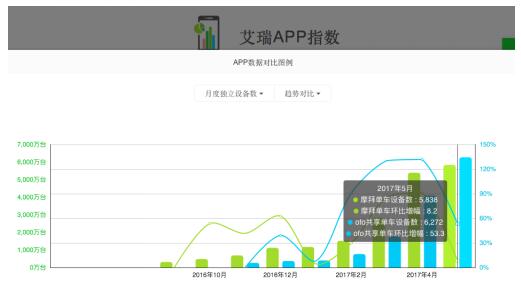 前不久,艾瑞咨詢的最新數(shù)據(jù),ofo5 月月度活躍用戶已達 6272 萬,環(huán)比 4 月增長53.3%,摩拜活躍用戶則增至 5838 萬,環(huán)比增長8.2%。ofo用戶規(guī)模以絕對領先優(yōu)勢,占據(jù)行業(yè)第一位置。
