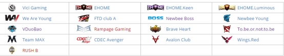 VG、LGD、LFY、CDEC、VGJ、iG.V、TEAM MAX,,而經(jīng)歷了換人風(fēng)波的EHOME雖然擁有TI6冠軍成員,但由于排名靠后,很有可能要參加公開海選賽。