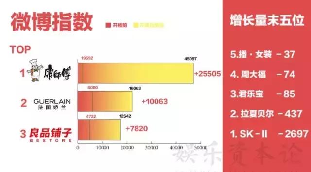結(jié)果發(fā)現(xiàn),同是植入,效果卻有天壤之別,甚至還有越植入流量越低的情況。不久不多說,娛樂本錢論還是直接上榜單吧,給各位讀者姥爺看看本次《歡樂頌2》品牌植入Top10,以及倒數(shù)Top5。