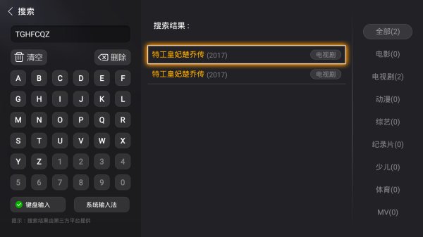 安置成功,在搜索框搜索《特工皇妃楚喬傳》的首字母“TGHFCQZ”即可不雅觀看。