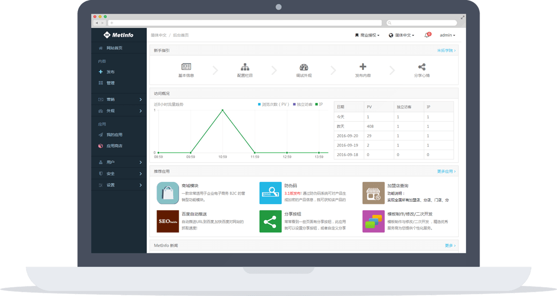 自稱「最適合企業(yè)建站的 CMS 系統(tǒng)」: MetInfo,因其具備美不雅觀,操作簡單,人性化體驗于一身的設計,受到多達 50 萬企業(yè)用戶的青睞。