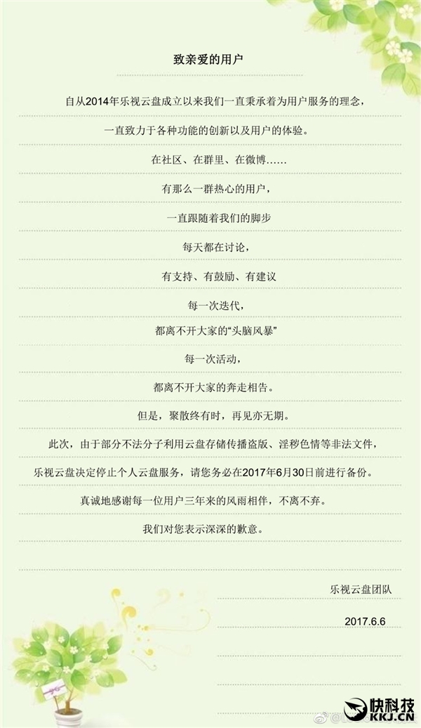 巨人網(wǎng)絡(luò)通訊聲明:本文標(biāo)題《又一個網(wǎng)盤倒下!樂視云盤頒布頒發(fā)停服》,本文關(guān)鍵詞 又一個,網(wǎng)盤,倒下,樂視,;如發(fā)現(xiàn)本文內(nèi)容存在版權(quán)問題,煩請?zhí)峁┫嚓P(guān)信息告之我們,我們將及時溝通與處理。本站內(nèi)容系統(tǒng)采集于網(wǎng)絡(luò),涉及言論、版權(quán)與本站無關(guān)。