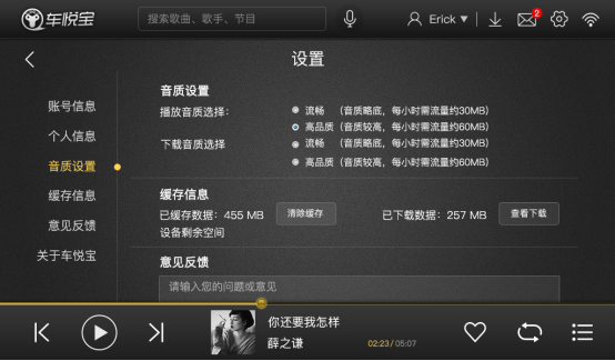 高品質(zhì)音效可如春雨綿綿,可如夏日蟬鳴,聆聽(tīng)真實(shí)的自然之音。車悅寶3.1版本全新加入了音質(zhì)設(shè)置功能,暢聽(tīng)更加流暢,流量更省心。