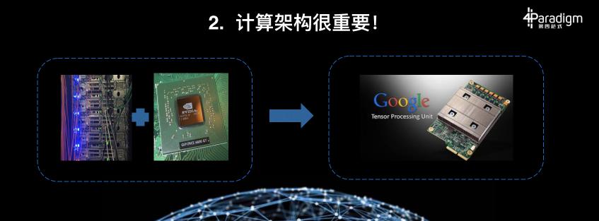 第二條,計算架構(gòu)也很重要。我們知道去年用了上千的CPU,用了成百的GPU,但是本年只用了小小的TPU。本年用的計算架構(gòu)與去年的計算架構(gòu)比擬,有了一種飛躍性的變革。