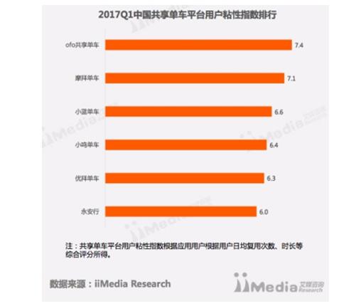 ofo用戶粘性以7. 4 高分居于行業(yè)第一