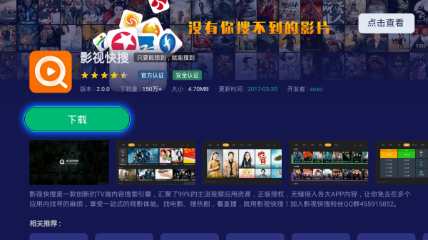 一、百度搜索“影視快搜”下載最新的安置包拷貝到U盤;