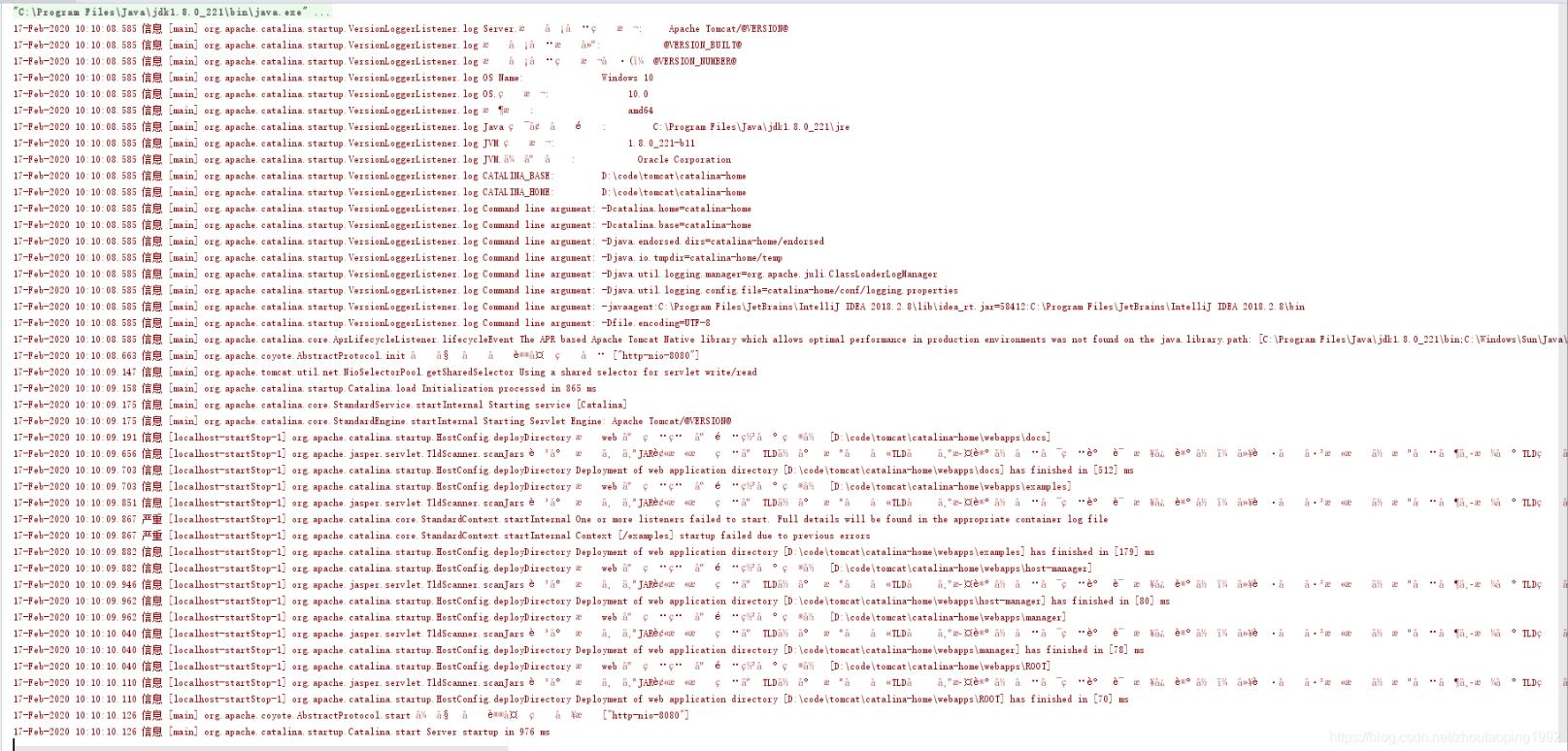 今天準(zhǔn)備學(xué)習(xí)下tomcat源碼,于是從官網(wǎng)下載了tomcat的源碼,導(dǎo)入到IDEA中,使用maven工具build完項(xiàng)目之后,啟動項(xiàng)目,控制臺打印了tomcat日志,但是中文都是亂碼。