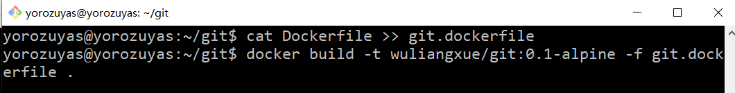 輸入命令: docker build -t wuliangxue/git:0.1-alpine -f git.dockerfile .
