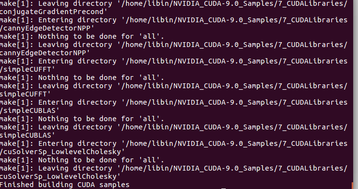 如果編譯成功,最后會(huì)顯示Finished building CUDA samples,如下圖所示。