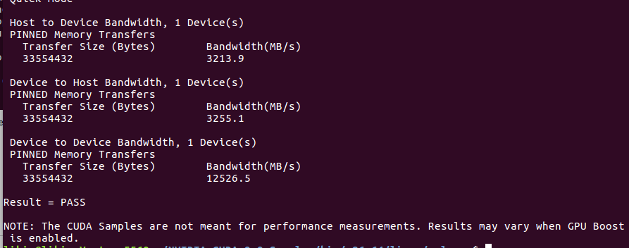 接著在上一個(gè)終端中輸入 :$ cd /home/lxxx/NVIDIA_CUDA-9.0_Samples/bin/x86_64/linux/release 其中xxx是你自己的用戶名