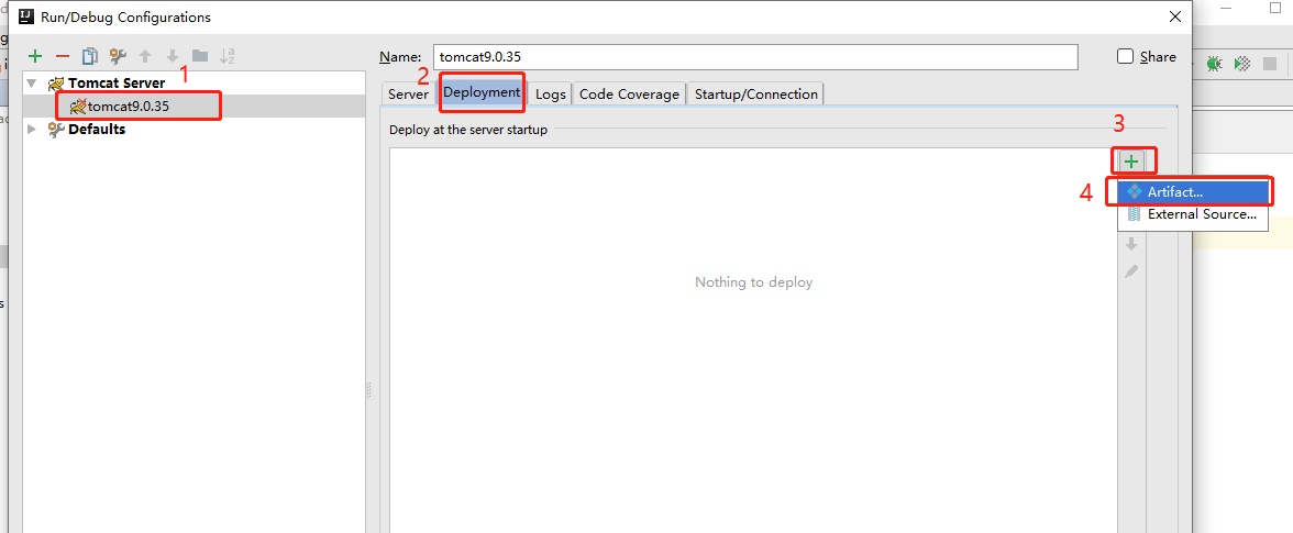 點(diǎn)擊Local之后,Defaults上面會(huì)出現(xiàn)Tomcat Server,名字是自己隨便取的。