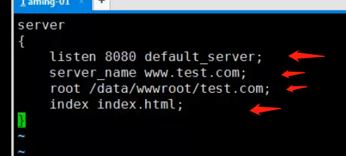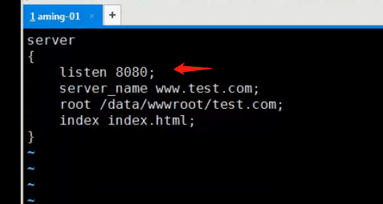 監(jiān)聽 8080 端口,域名為 www.test.com