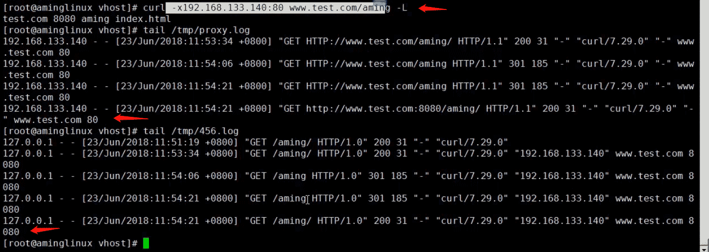 如圖,curl 訪問 127.0.0.1:80 域名 www.test.com