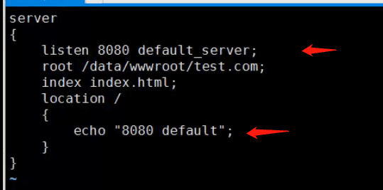 一個(gè)是 test 虛擬主機(jī),另外一個(gè)是 8080 default 虛擬主機(jī)
