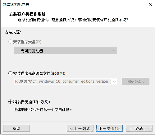 選擇稍后安裝操作系統(tǒng),然后點(diǎn)擊下一步: