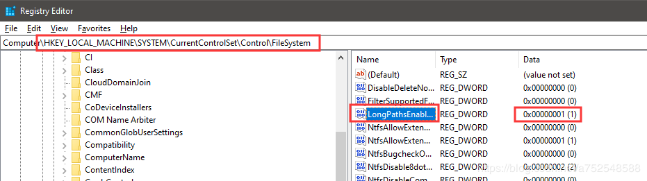 找到如下路徑:HKEY_LOCAL_MACHINE\SYSTEM\CurrentControlSet\Control\FileSytem