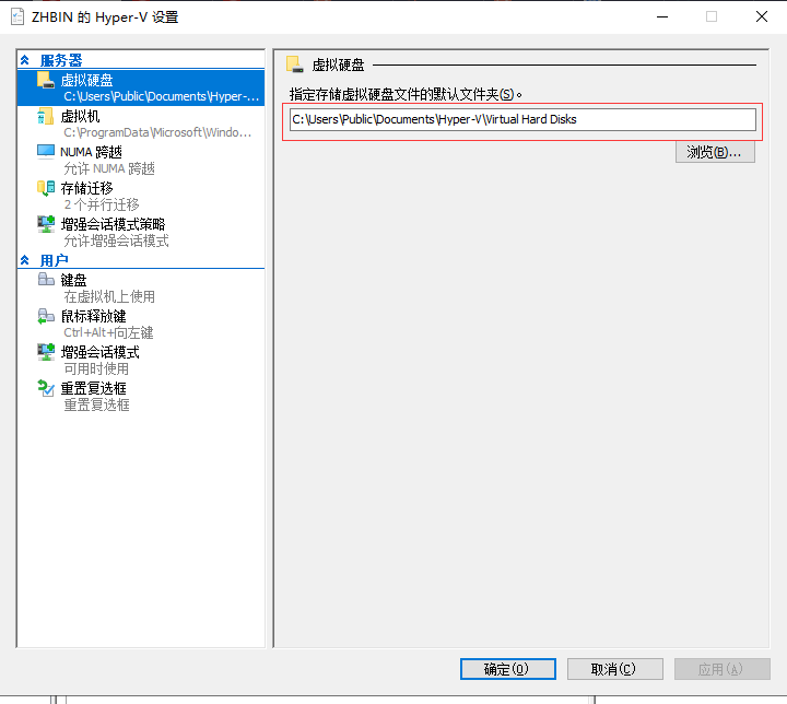 右鍵選擇Hyper-V設置,修改下圖所示的存儲路徑為你要存儲的位置。