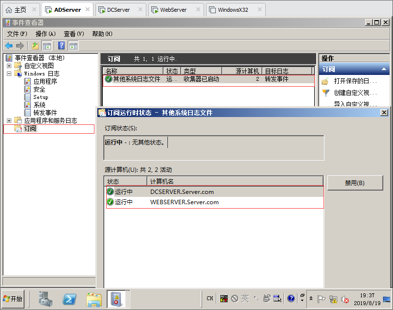14.打開轉(zhuǎn)發(fā)事件,可以看到訂閱過來的日志,計(jì)算機(jī)有DCServer跟WebServer的日志信息。