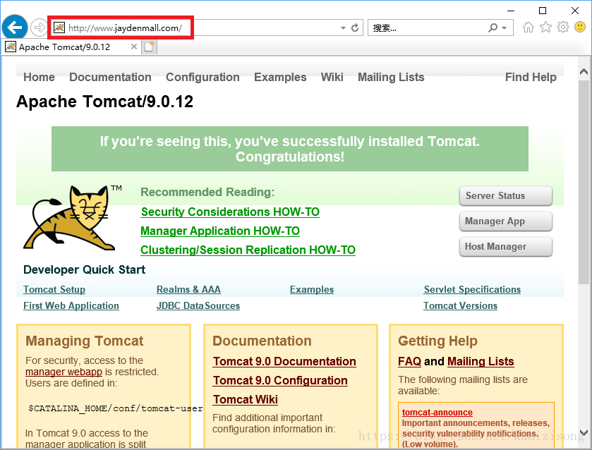 端口反向代理成功,注意紅色部分是默認(rèn)的 80 端口,實(shí)際指向的確是 tomcat 的 8080 端口。