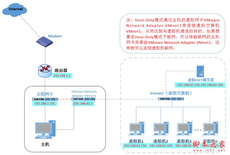 主機(jī)模式和NAT模式很相似,只不過(guò)不能上網(wǎng),相當(dāng)于VMware虛擬一個(gè)局域網(wǎng),但是這個(gè)局域網(wǎng)沒(méi)有連互聯(lián)網(wǎng)。