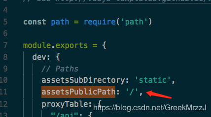 非 production mode 下,是在config/index.js 中設置的,這里的 publicPath 默認是