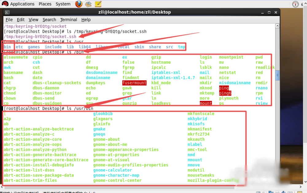 第三步,usr是系統(tǒng)使用者所常用的目錄,里面存放著一些軟件及文件。我們可以看到,在usr目錄里面也存在著bin文件,而在系統(tǒng)總目錄里面,也存在一個(gè)bin目錄,我們可以分別打開,便會(huì)發(fā)現(xiàn)之間還是存在很大差別的。