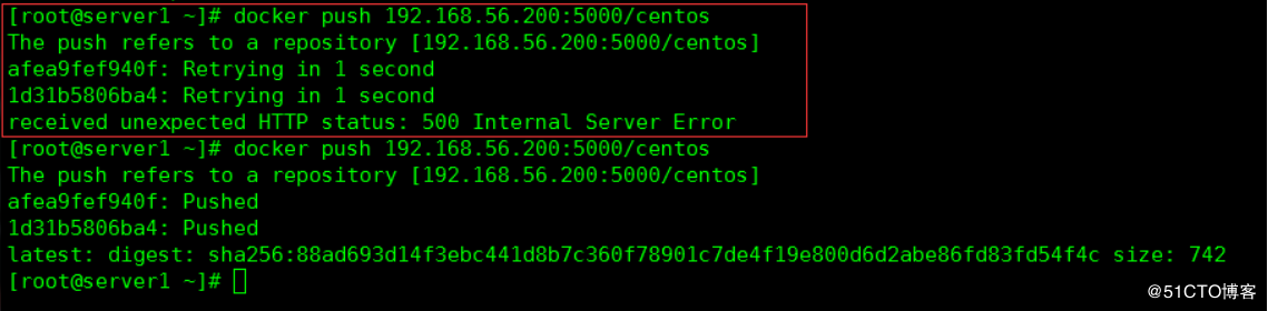 [root@server1 ~]# docker push 192.168.56.200:5000/centos