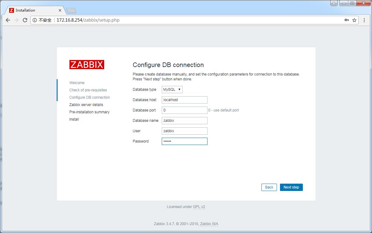 mysql -uzabbix -pzabbix2018 zabbix < schema.sql