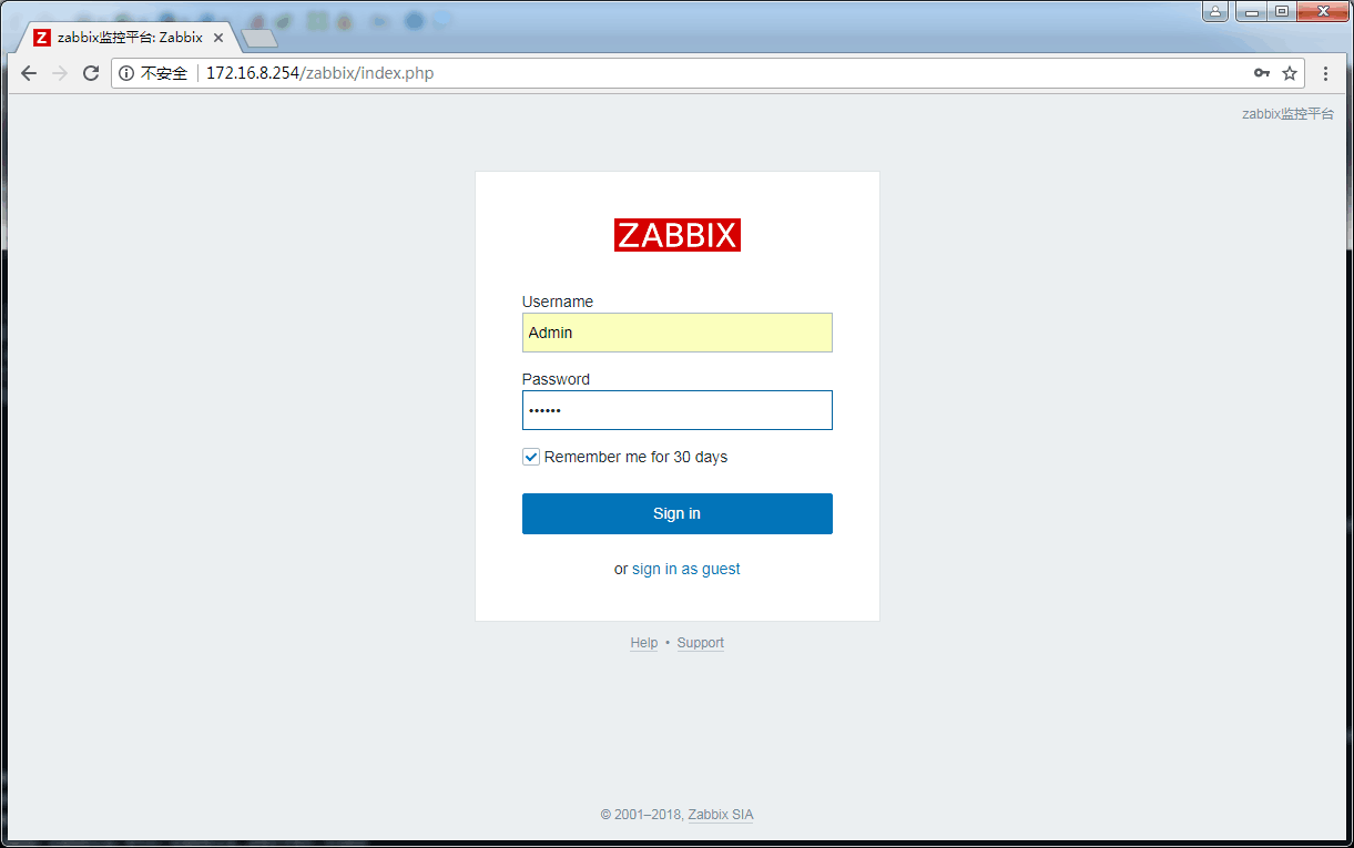登陸,默認(rèn)用戶名Admin,密碼zabbix