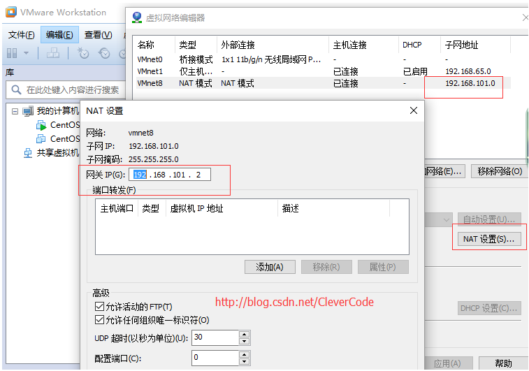 3)查看網(wǎng)關(guān)。編輯 > 虛擬網(wǎng)絡(luò)編輯器 > 選擇VMnet8 > Nat設(shè)置??梢钥吹骄W(wǎng)關(guān)的IP為192.168.101.2。