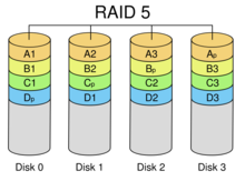 磁盤陣列(Redundant Arrays of Inexpensive Disks,RAID),有“價格便宜且多余的磁盤陣列”之意。原理是利用數(shù)組方式來作磁盤組,配合數(shù)據(jù)分散排列的設(shè)計,提升數(shù)據(jù)的安全性。磁盤陣列是由很多便宜、容量較小、穩(wěn)定性較高、速度較慢磁盤,組合成一個大型的磁盤組,利用個別磁盤提供數(shù)據(jù)所產(chǎn)生加成效果提升整個磁盤系統(tǒng)效能。同時利用這項技術(shù),將數(shù)據(jù)切割成許多區(qū)段,分別存放在各個硬盤上。磁盤陣列還能利用同位檢查(Parity Check)的觀念,在數(shù)組中任一顆硬盤故障時,仍可讀出數(shù)據(jù),在數(shù)據(jù)重構(gòu)時,將數(shù)據(jù)經(jīng)計算后重新置入新硬盤中。