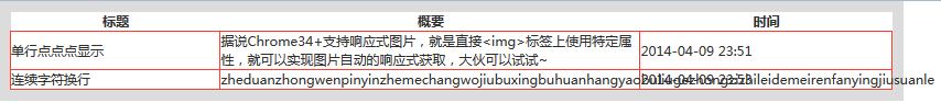 問(wèn)題:雖然為td設(shè)置了寬度,但因?yàn)閱卧竦牧鲃?dòng)性,使文字不存在溢出效果。而且表格的寬度是跟隨單元格內(nèi)容多少自動(dòng)計(jì)算尺寸。