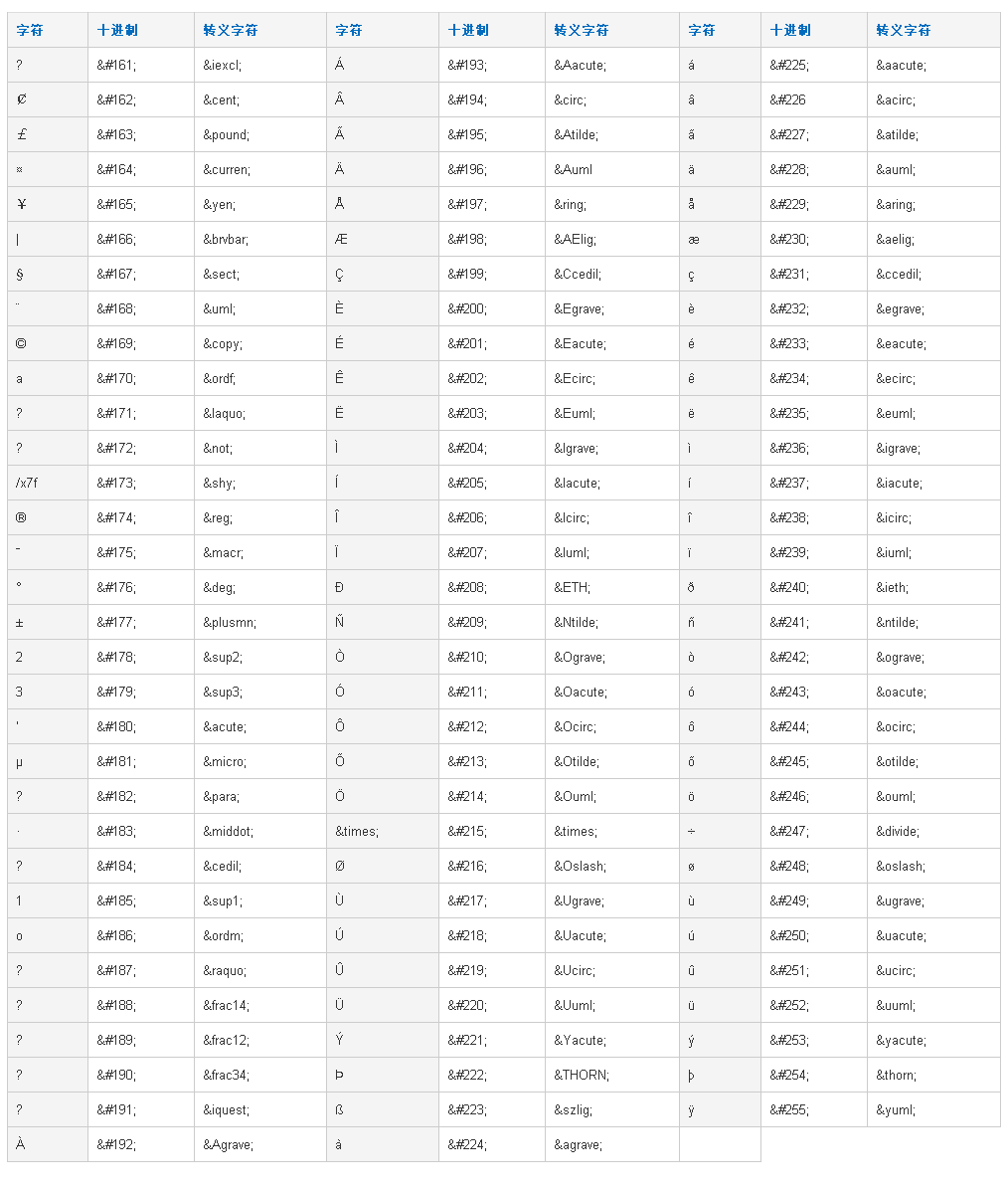 繼續(xù)提供一個比較全的HTML特殊轉(zhuǎn)義字符對照表