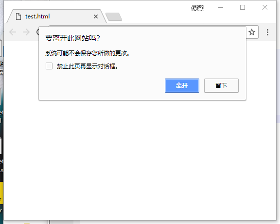 正在毫無計策的時候,我一直打開關(guān)閉嘗試該方法是否生效。突然發(fā)現(xiàn),如果頁面在剛打開的很短時間內(nèi)關(guān)閉頁面,onbeforeunload事件是不會被觸發(fā)的,在等待幾秒之后再關(guān)閉頁面就會觸發(fā)事件出現(xiàn)提示。