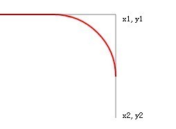 從圖中我們可以看到,(x2,y2)這個點的坐標可以無限變化,只要他始終是切線上的一個點,那么在圓的半徑不變的情況下,arcTo畫出的圖形不會有任何變化。這點需要特別注意。