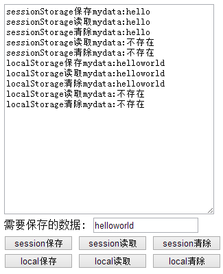 t1.value += "sessionStorage保存mydata:" + mydata + "\n";