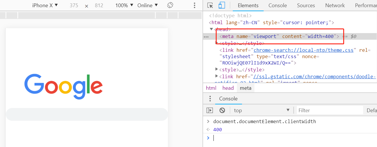 <meta name="viewport" content="width=400">
