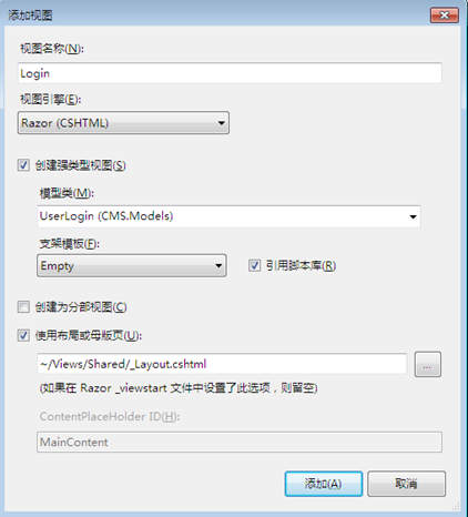 在public ActionResult Login() 上右鍵添加強類型視圖