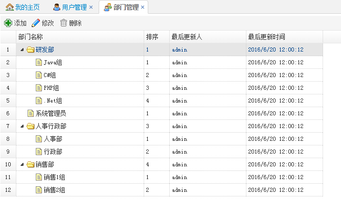 首頁左側(cè)導(dǎo)航菜單采用的easyui-accordion和tree結(jié)合的方式,后臺(tái)采取遞歸的方式,支持無限制的分層。