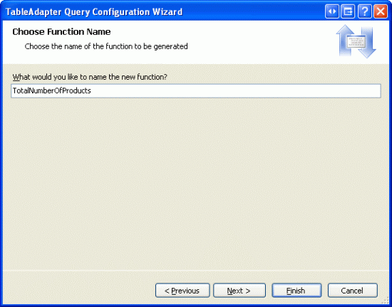 在下一個窗體我們可以指定創(chuàng)建哪種SQL .由于查詢只返回一個值–Products表的總記錄條數(shù)–我們選擇“SELECT which returns a singe value”.