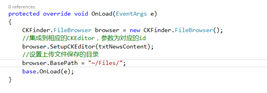 在頁(yè)面對(duì)應(yīng)的代碼頁(yè)中重寫(xiě)Page的OnLoad方法,在OnLoad方法中將CKFinder集成到CKEditor中